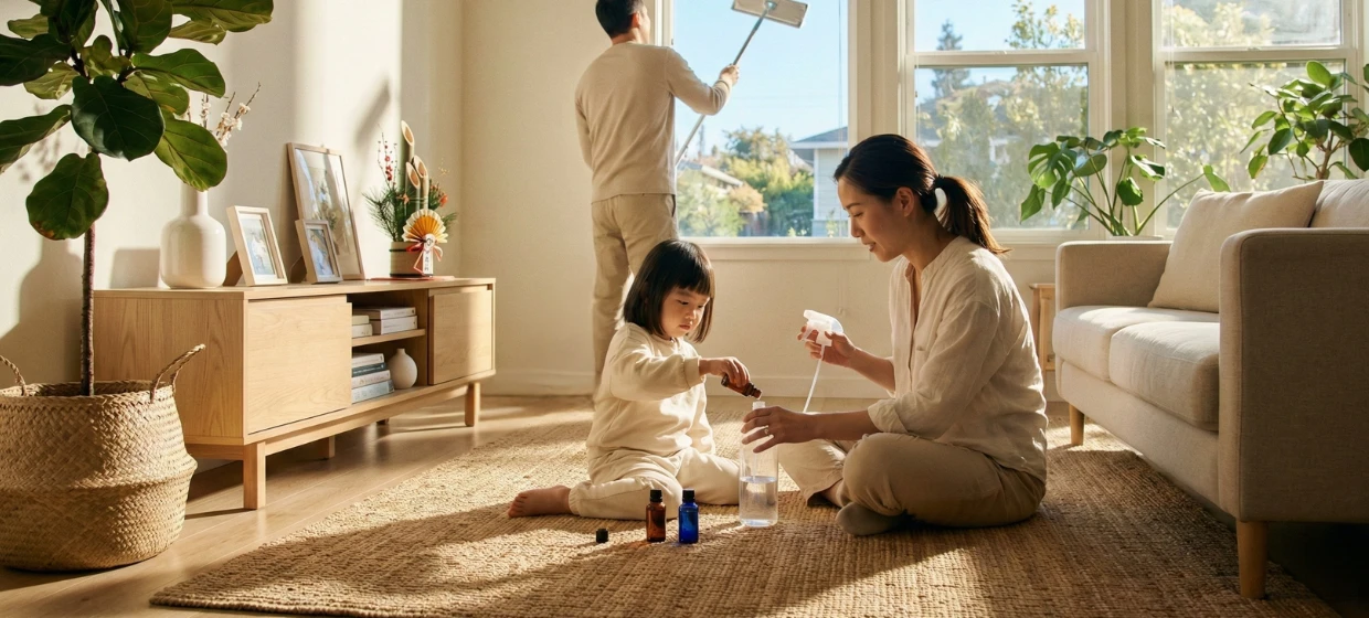 在拖地或擦拭家具的酒精/清潔液中滴入 3-5 滴精油。紅橘能幫助髒污更容易被淨化,並讓家中的地板與家具散發天然清香,為新的一年帶來圓滿甜美的開頭。