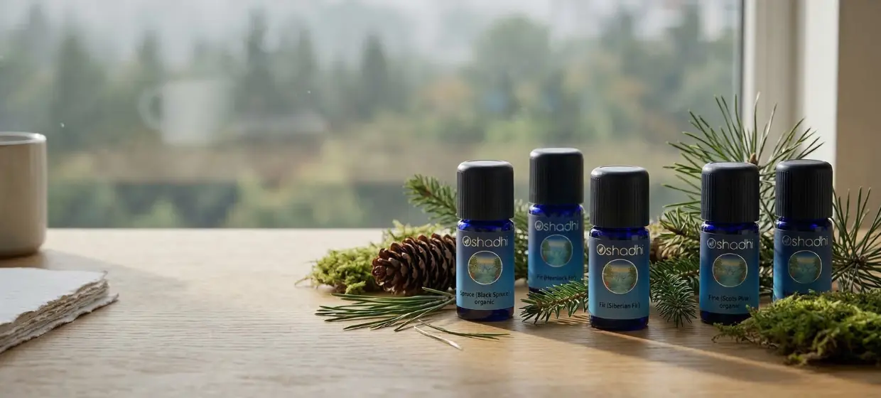 針對都會高壓生活常見的緊繃情境,肯園芳療師 Doris 從德國專業芳療品牌 Oshadhi 龐大的森林家族中,精選五款對大眾較為陌生、卻極具代表性的針葉樹香氣,這些氣息能精準對應都會生活的疲累,為室內開啟一扇汲取芬多精的窗口: