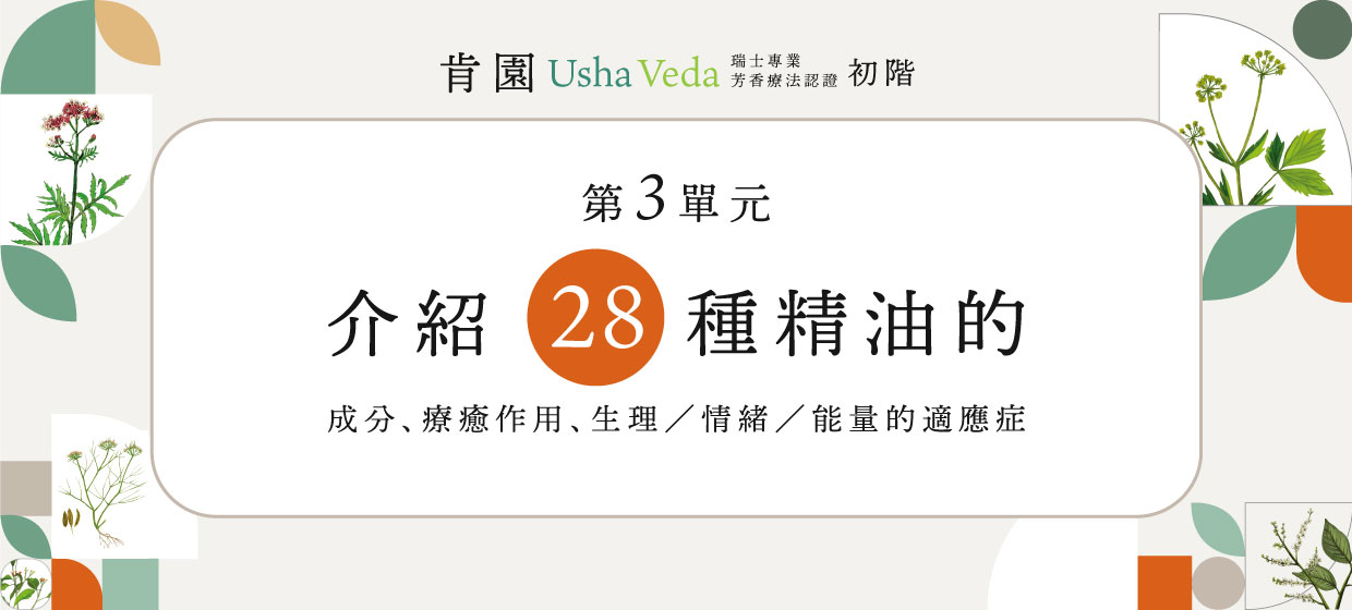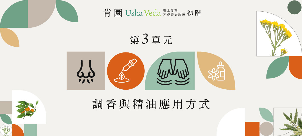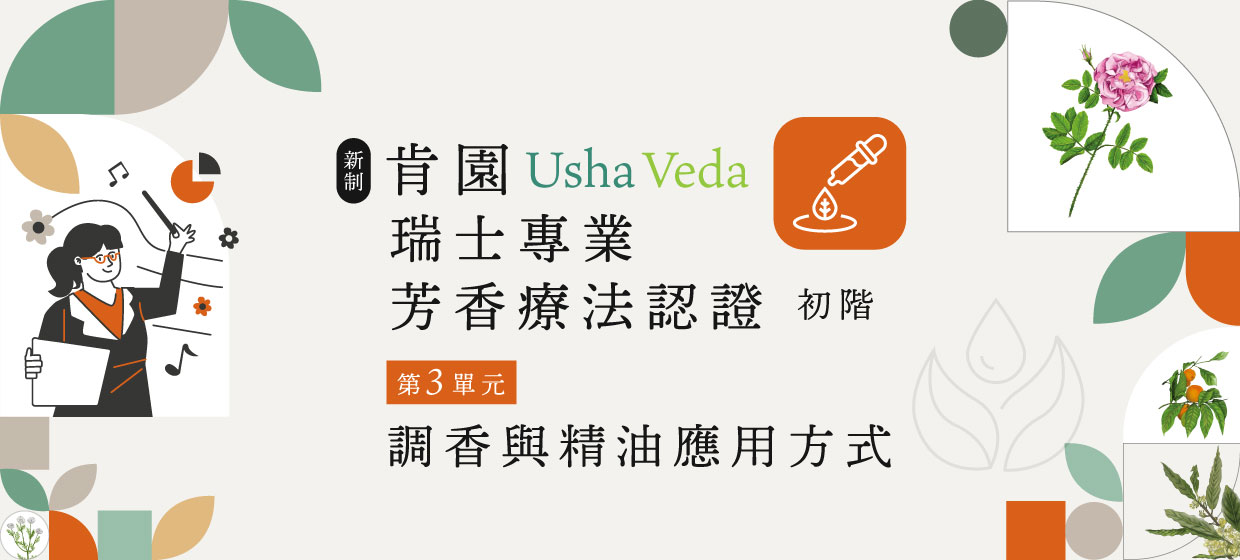 ・完成5個單元學習者,可經報名繳費後參加筆試,通過考試即可取得由瑞士Usha Veda核發的芳療認證初階時數證明。