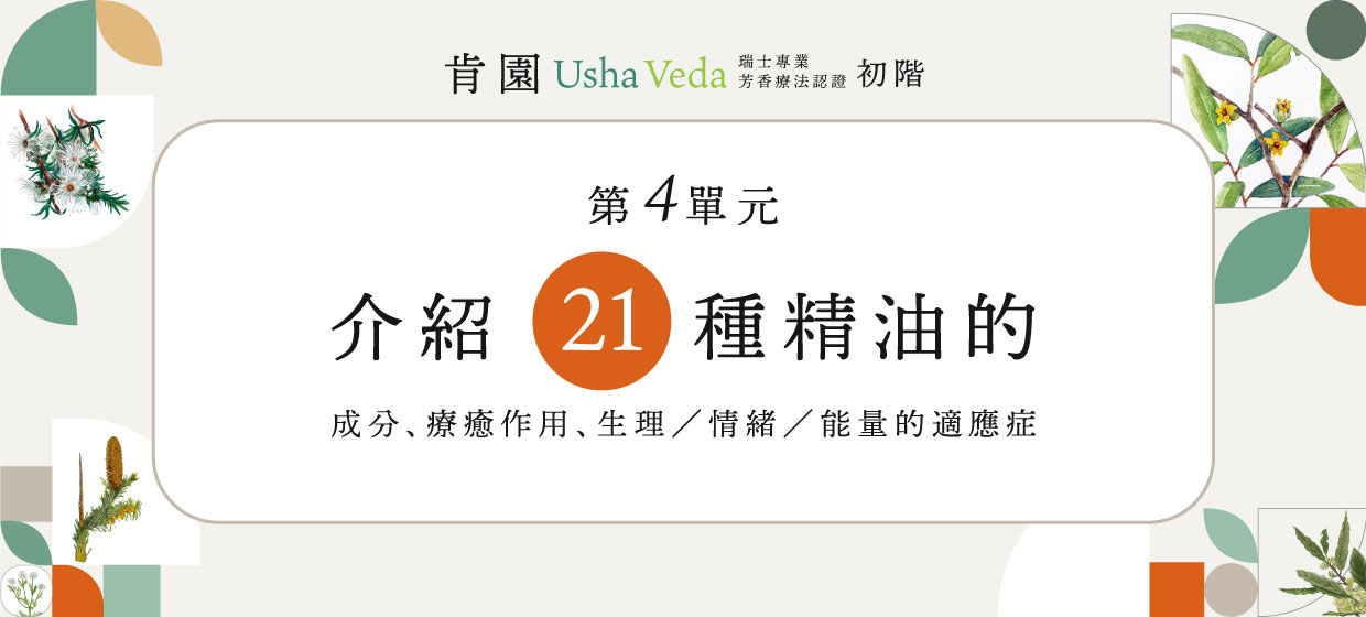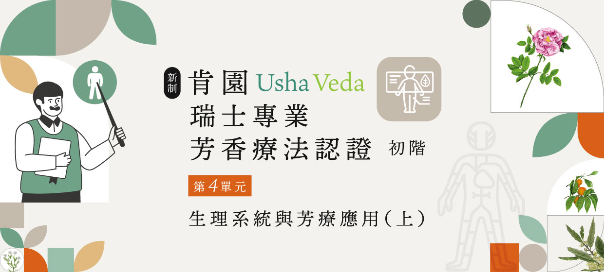・完成5個單元學習者,可經報名繳費後參加筆試,通過考試即可取得由瑞士Usha Veda核發的芳療認證初階時數證明。