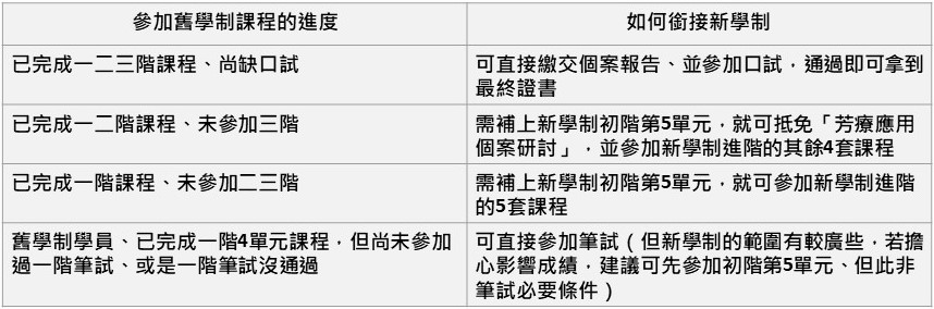 參加過2024年以前舊學制的學員,銜接新學制的辦法如下: