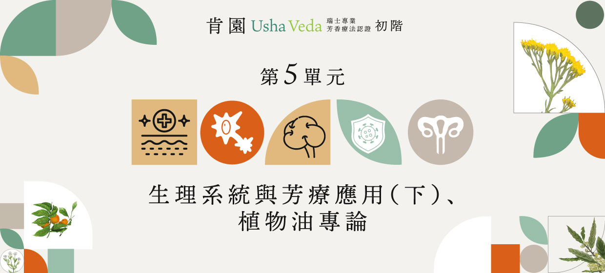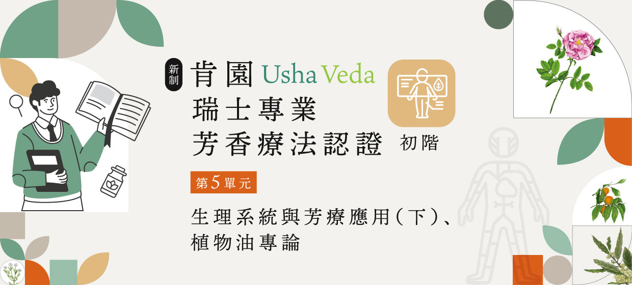 ・完成5個單元學習者,可經報名繳費後參加筆試,通過考試即可取得由瑞士Usha Veda核發的芳療認證初階時數證明。