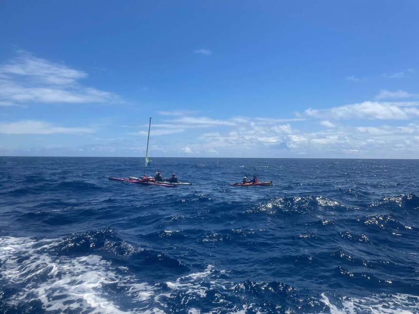 這是2022五月,伊倩與夥伴從蘭嶼划回台灣。深邃、迷人的黑潮,在陽光照耀下更顯璀璨。