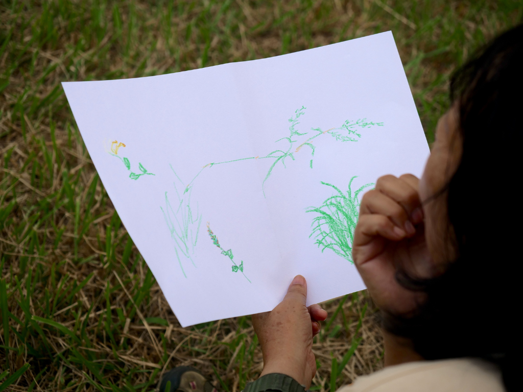 「你可以坐下、站立、靠近它,透過氣味、觸覺、身體、直覺與植物互動,如果你想,最後用畫筆將感受記錄下來。」Tammy 引導大家。