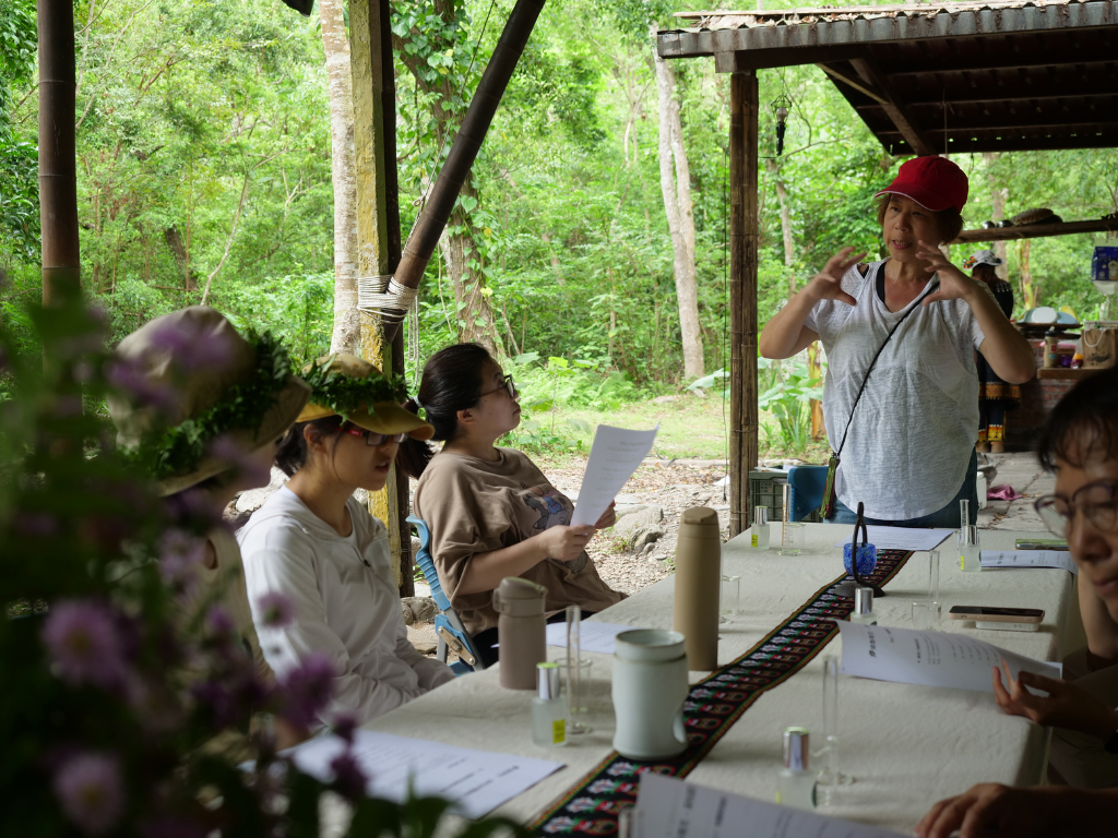 午後,芳療師Tammy 帶來純露調香DIY工作坊,先帶領學員一一品味幾種在地植物純露氣味,並且分享純露調香和精油調香的心法略有不同,調香比例也會依植物純露特性做調整。