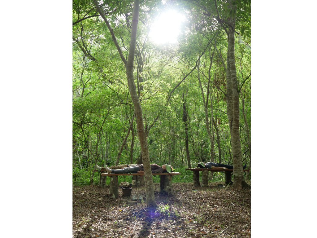 竹床薰蒸體驗結束後,我們在紅檜純露的香氣中起身,大家很有默契地靜默,讓自然的聲響流動在森林中,沉靜的姿態,彷彿生命中、日常裡的繁瑣,真的被大地承接了。