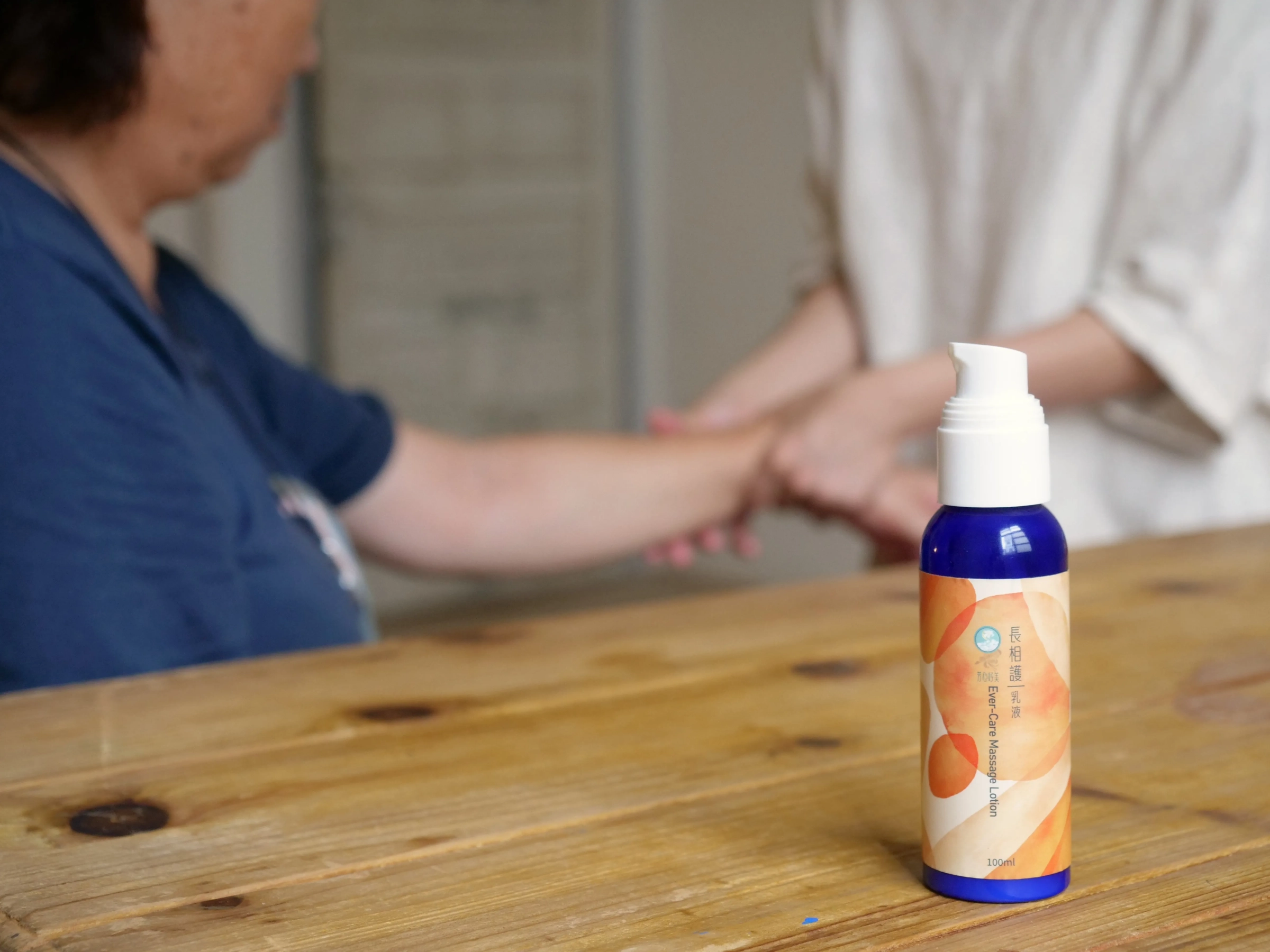 肯園專為照護設計的系列中,如:「長相護」乳液、「長相憶」按摩油等產品,名稱背後是對生命長河的敬意。當子女或護理人員為長輩抹上帶有台灣原生植物氣息的精油,那份跨越言語的觸摸,既緩解了老後的孤寂,也同時療癒了照顧者自己。